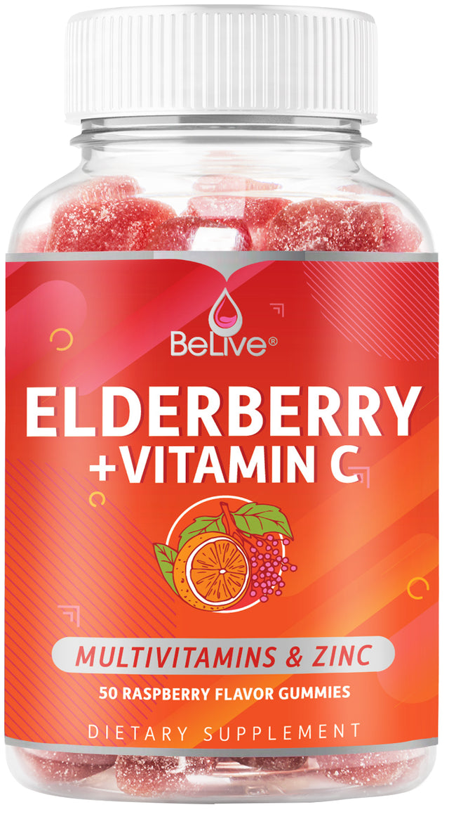 Belive Elderberry Gummies with Vitamin C – Double Strength Elderberry with Immune Boosting Vitamin D, B-Complex, and Zinc - Raspberry Flavor (50 Count)