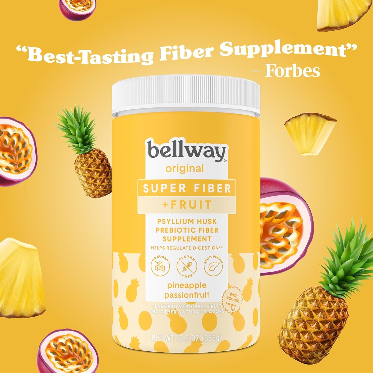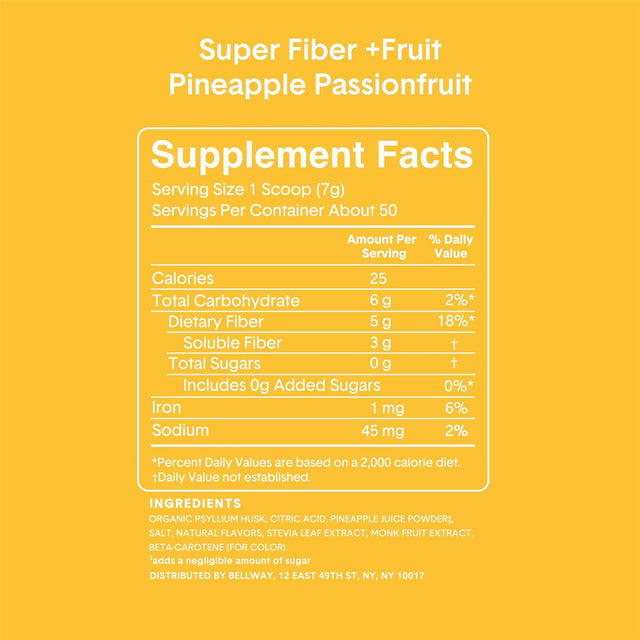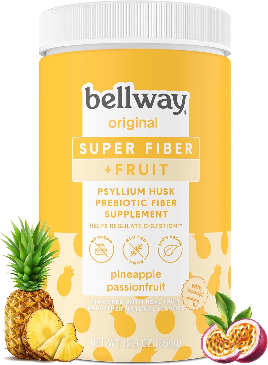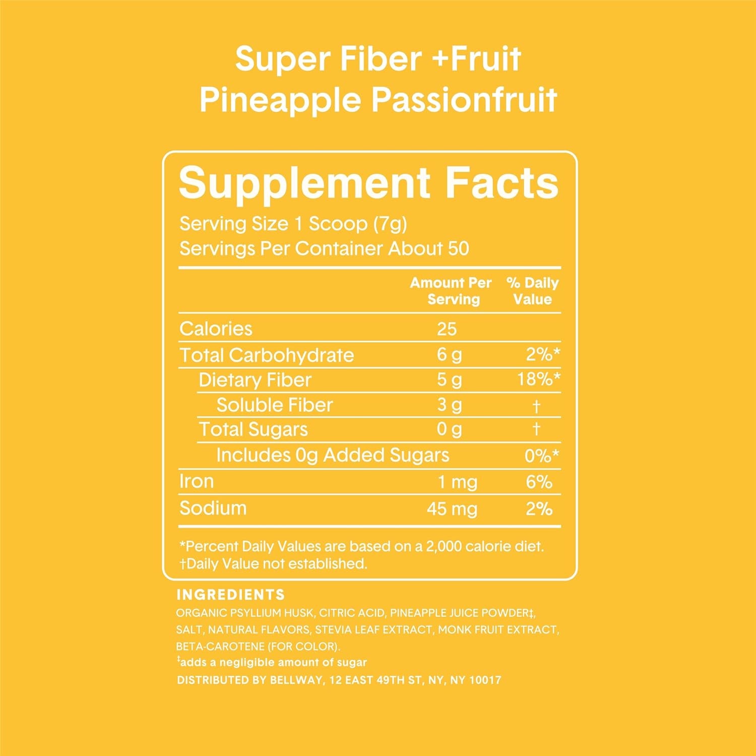 Bellway Super Fiber Powder + Fruit, Sugar Free Organic Psyllium Husk Powder Fiber Supplement for Regularity, Bloating Relief & Gut Health, Non-Gmo, Plant-Based, Pineapple Passion Fruit (12.9 Oz)