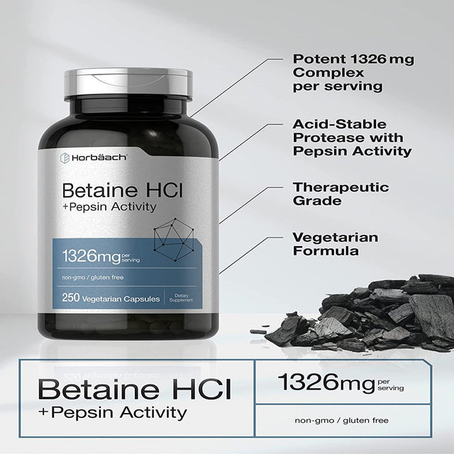 Betaine Hcl with Pepsin | 1326Mg | 250 Vegetarian Capsules | by Horbaach