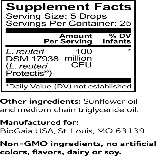 - NEWBORNS +: Just 5 drops, once daily, provides the exclusive probiotic L. reuteri Protectis