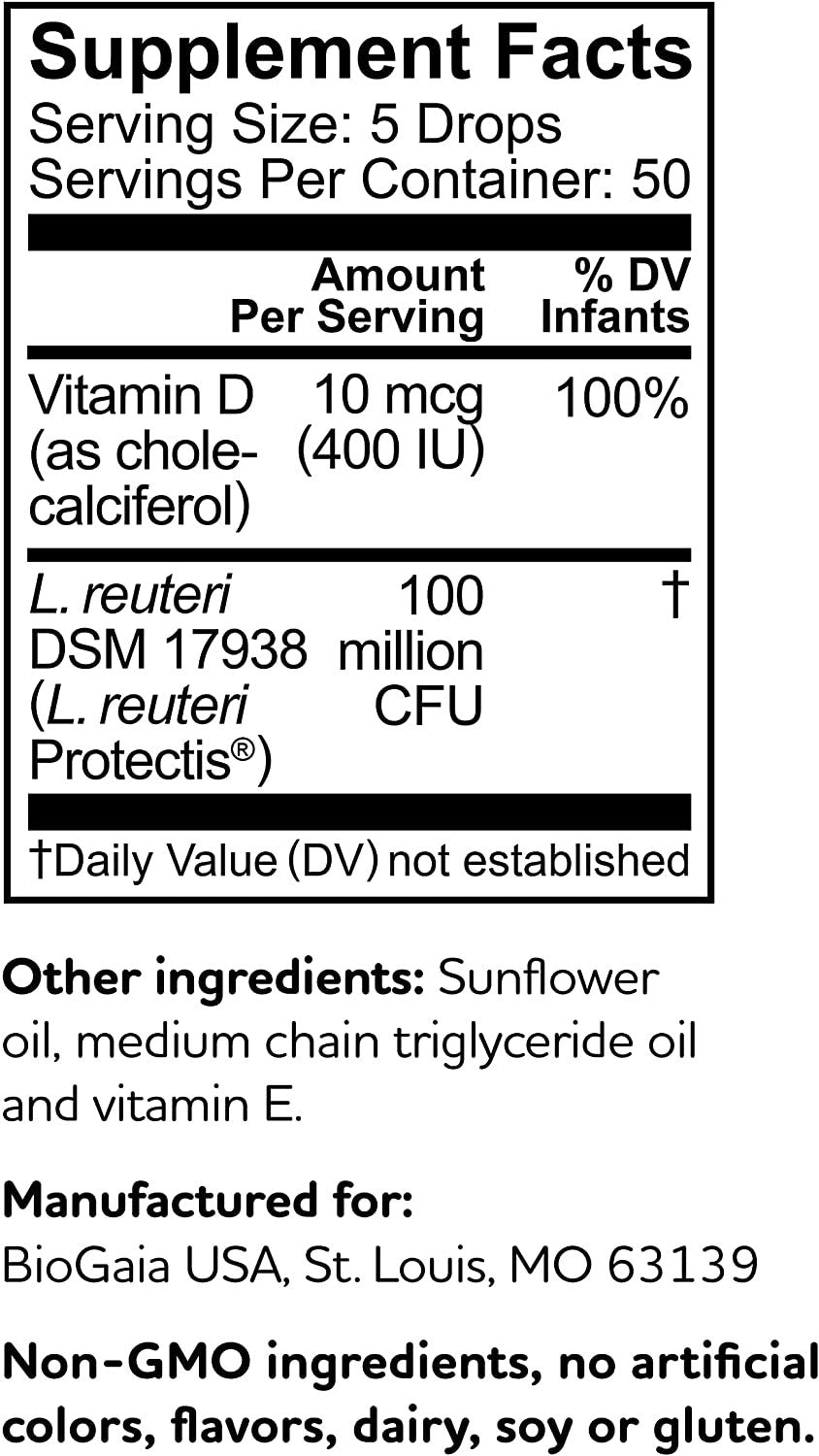 - NEWBORNS +: Just 5 drops, once daily, provides the exclusive probiotic L. reuteri Protectis & 400 IU of Vitamin D