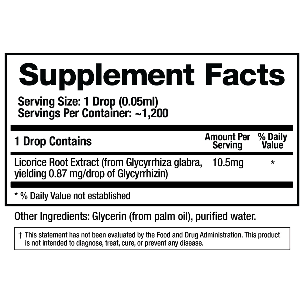 - IMPROVED FORMULA - In 2020, BioMatrix sourced an improved licorice root extract (Glycyrrhiza glabra) with 3X the strength of the active ingredient, Glycyrrhizin. The 10.5 mg of licorice root extract per drop contains the same amount of Glycyrrhizin as the previous version of the product (which contained 35 mg of extract per drop). There is no need to change the number of drops taken with this upgraded version of the product.