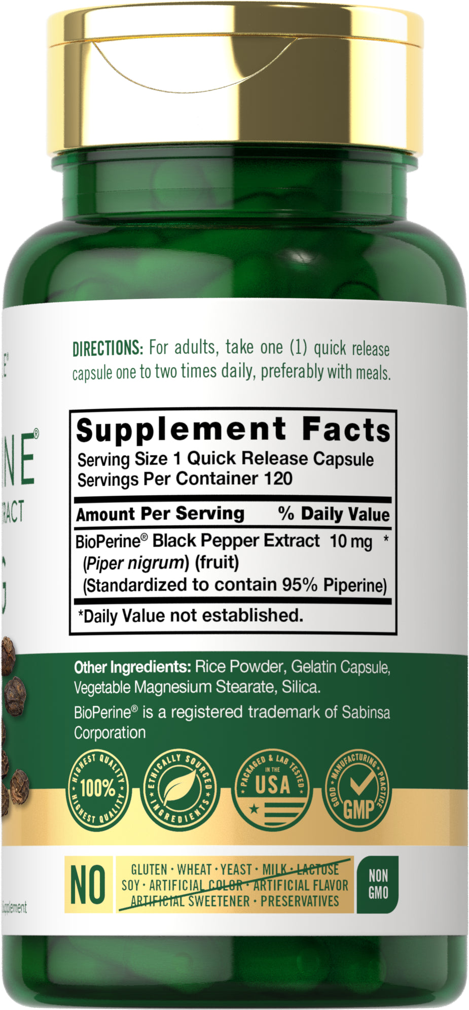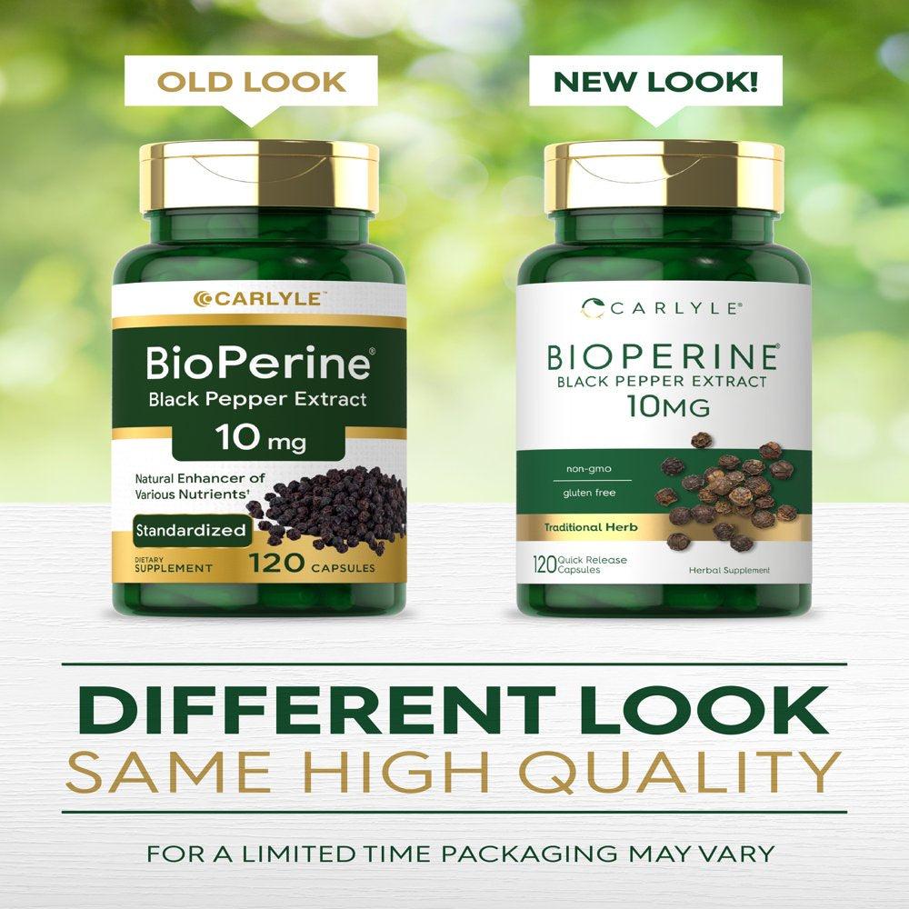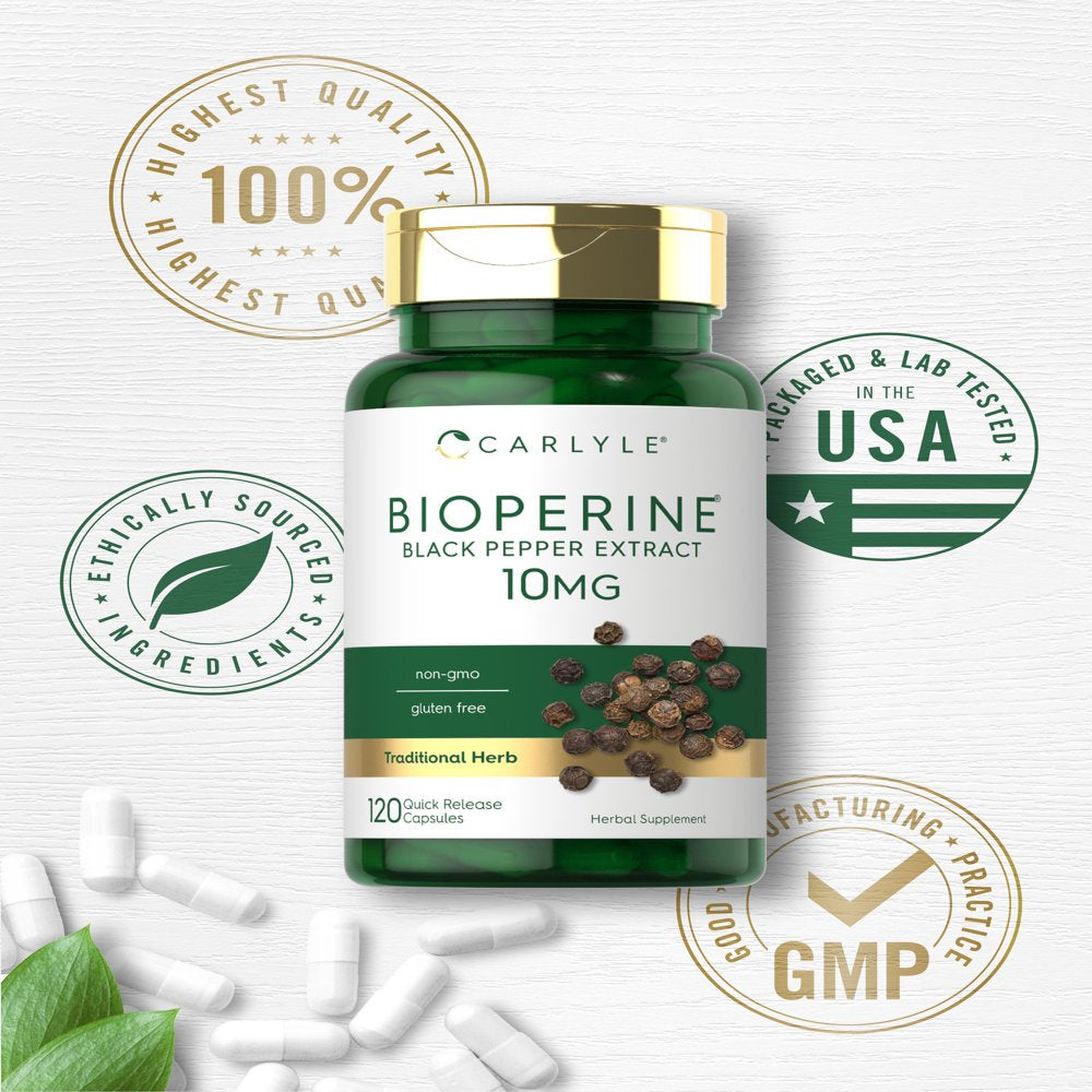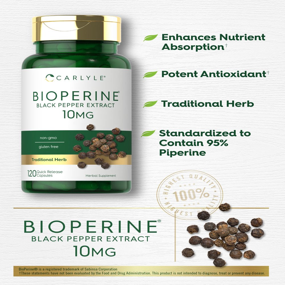 - Carlyle Bioperine 10mg 120 Capsules is high potency and Gluten Free and Non-GMO