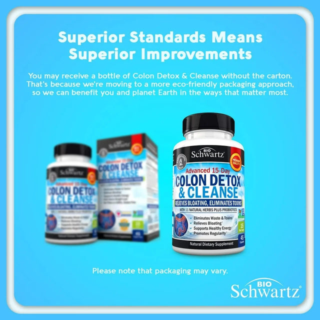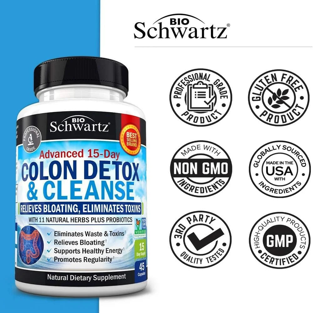 Bioschwartz Colon Cleanser Detox for Weight Loss | 15 Day Cleanse for Constipation Relief & Bloating Support | Non-Gmo, 45 Ct