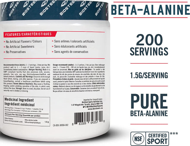 Biosteel Stackables Beta-Alanine Powder, Gluten Free and Non-Gmo Formula, Unflavored, 200 Servings