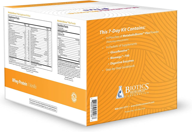 BIOTICS Research Metabolicbiome plus Whey Vanilla 7-Day Healthy Weight Management Kit, Supports Microbiome Health and Balanced Blood Lipid, Multi-Vitamin, Digestive Enzyme, Step-By-Step Guidebook
