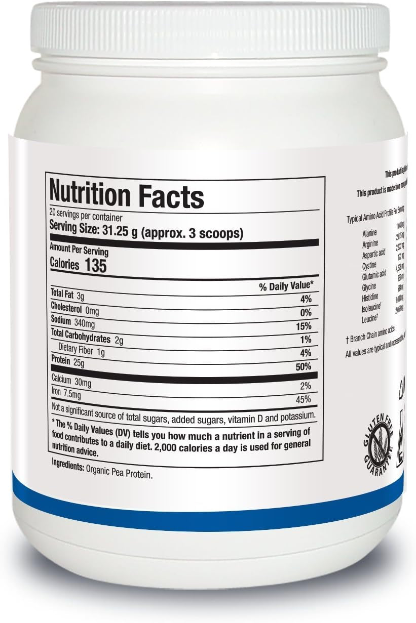 BIOTICS Research Pea Protein Isolate 100Percent Organic North American Peas. Dairy Free. Vegan Friendly. Plant-Based Protein Source. Powdered Formula, Mixes Easily with Water or Juice. 22 Ounces