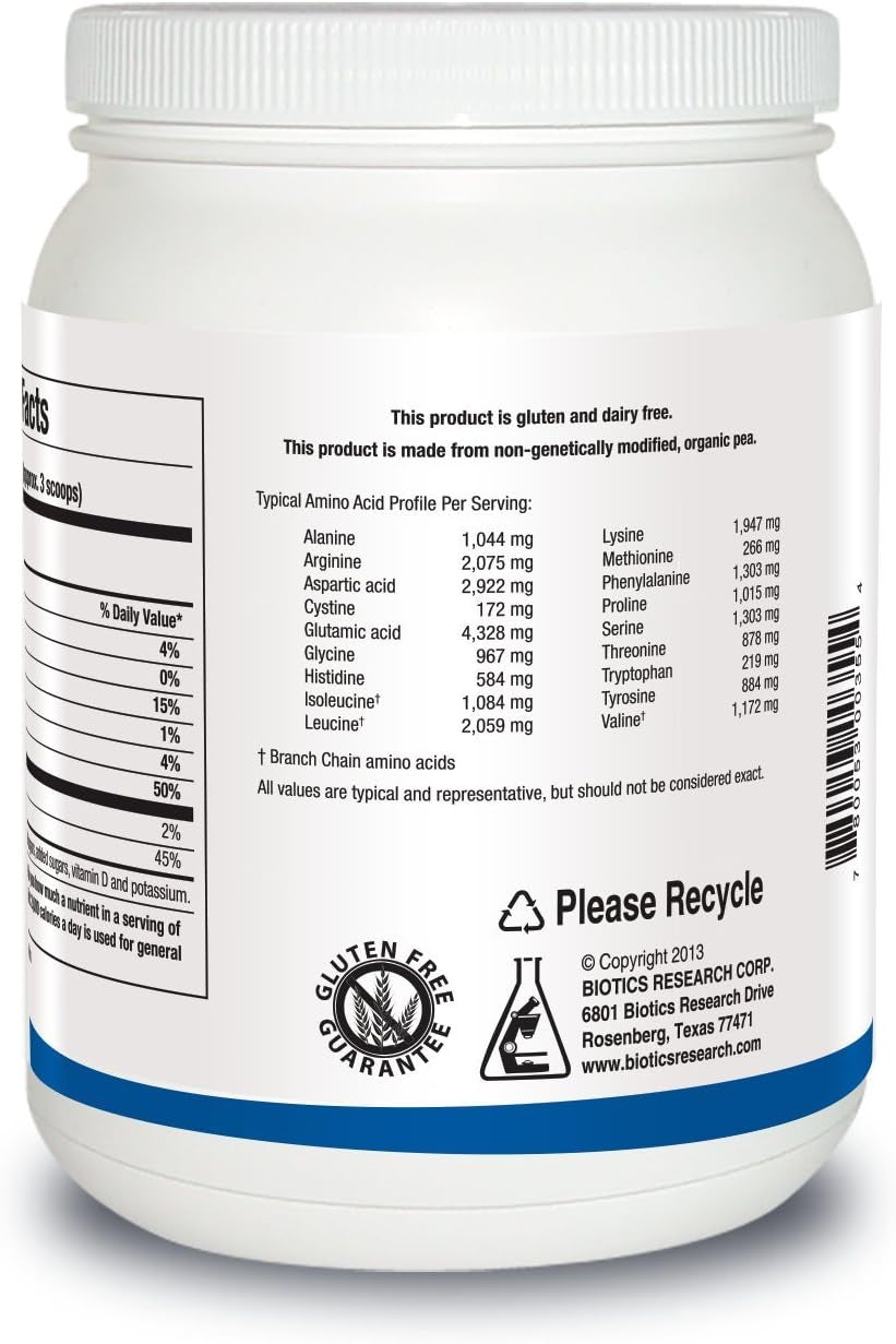 BIOTICS Research Pea Protein Isolate 100Percent Organic North American Peas. Dairy Free. Vegan Friendly. Plant-Based Protein Source. Powdered Formula, Mixes Easily with Water or Juice. 22 Ounces is backordered and will ship as soon as it is back in stock.