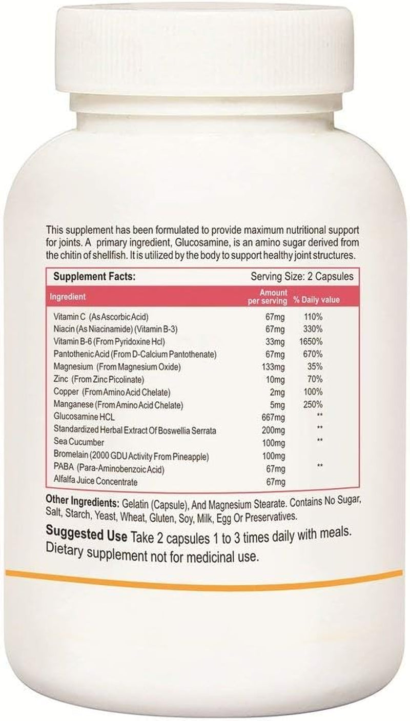 This supplement has been formulated to provide maximum nutritional support for joints. * A primary ingredient, glucosamine, is an amino sugar derived from the chitin of shellfish. It is utilized by the body to support healthy joint structures.