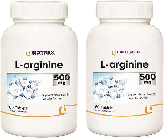 Biotrex Nutraceuticals L-Arginine - 500Mg, Supports Blood Flow and Vascular Function (60 Tablets) - Pack of 2