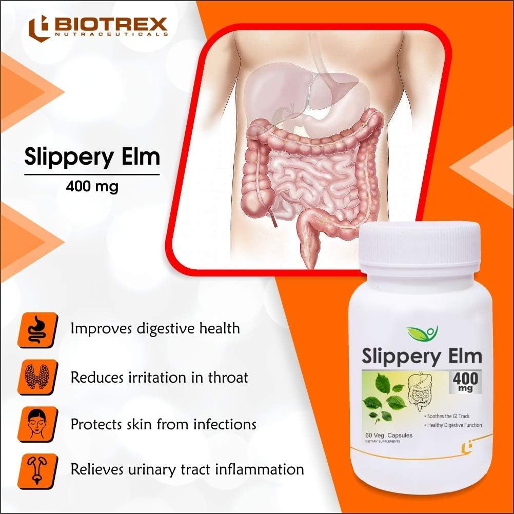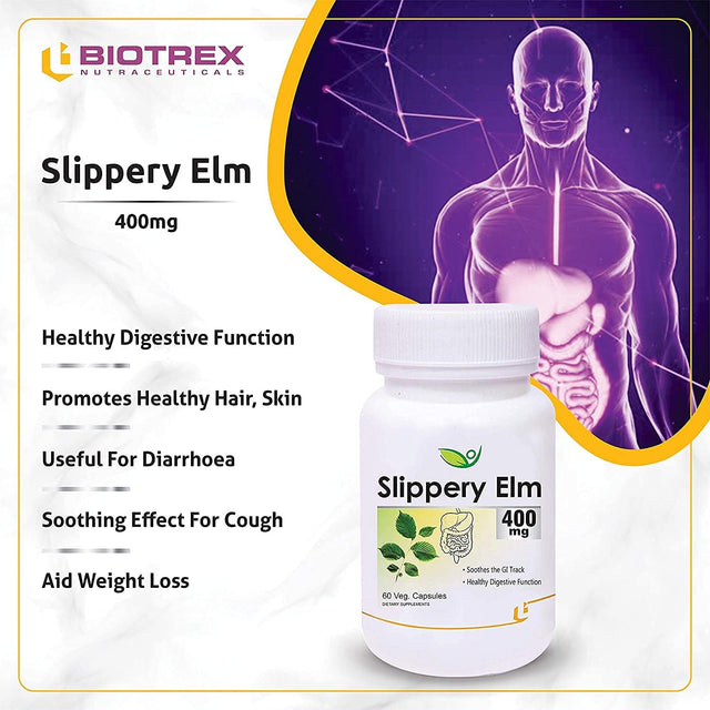 Biotrex Nutraceuticals Slippery Elm 400 Mg, 60 Veg Capsules, Pack of 2