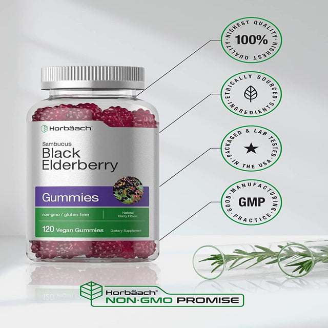 Black Elderberry with Zinc & Vitamin C | 120 Vegan Gummies | Natural Berry Flavor | by Horbaach