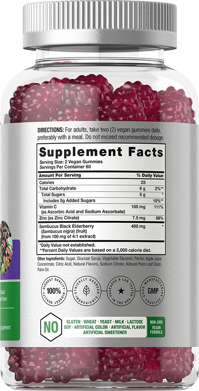 - OPTIMAL FORMULA: Features 400 mg per serving of Black Elderberry plus Vitamin C and Zinc