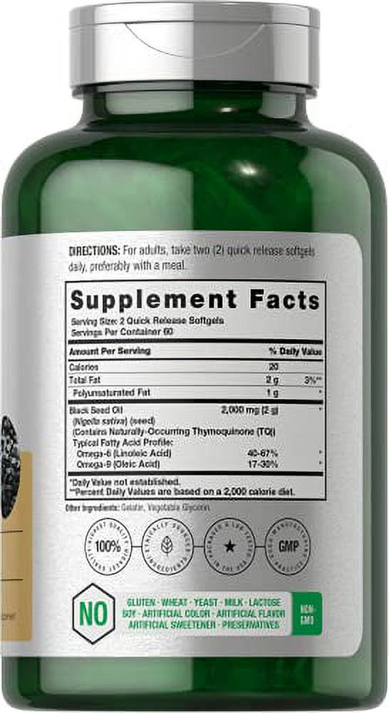 Black Seed Oil 2000Mg | 120 Softgel Capsules | Cold Pressed Nigella Sativa Pills | Non-Gmo, Gluten Free | by Horbaach
