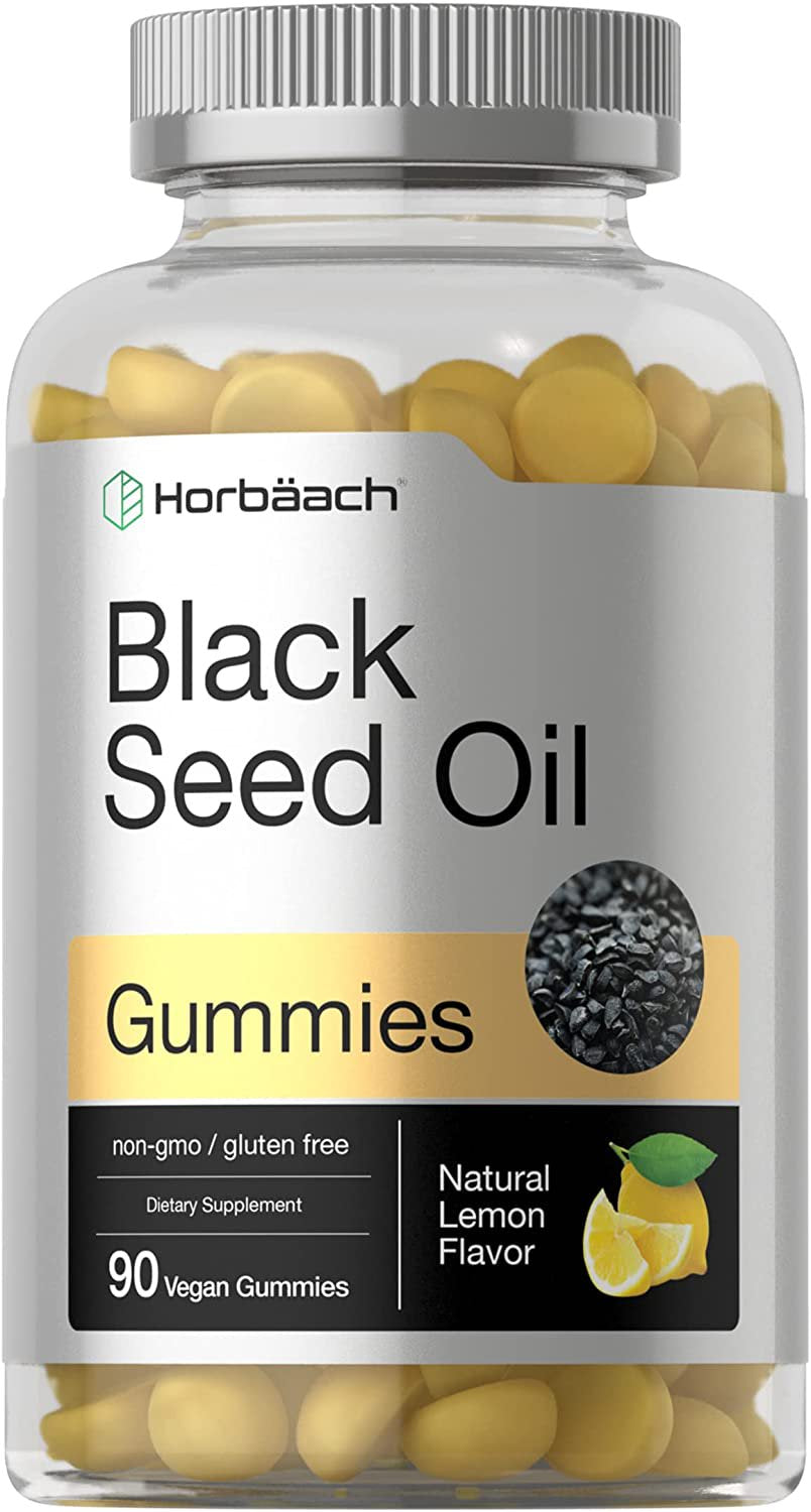 Blackseed Oil Gummies | 90 Count | Vegan Formula | Natural Lemon Flavor | by Horbaach is backordered and will ship as soon as it is back in stock.
