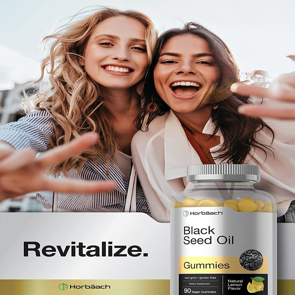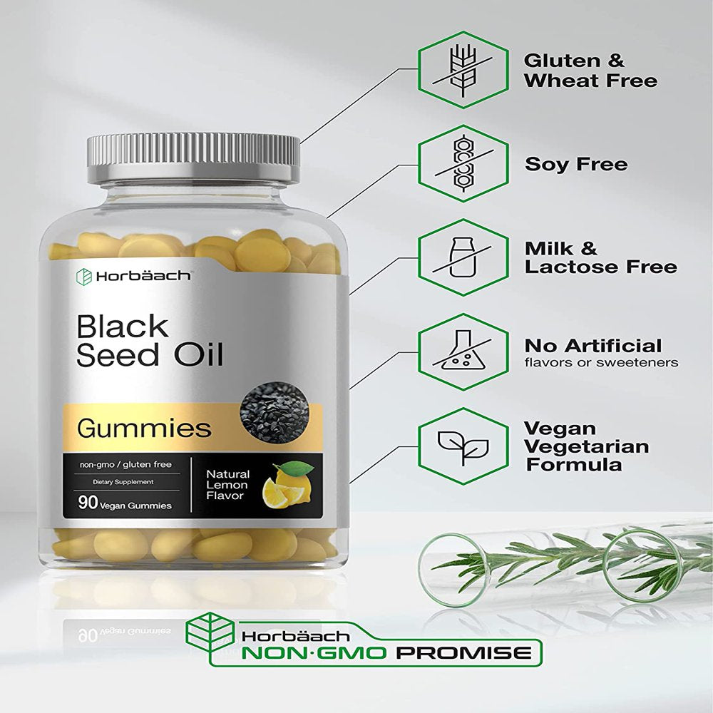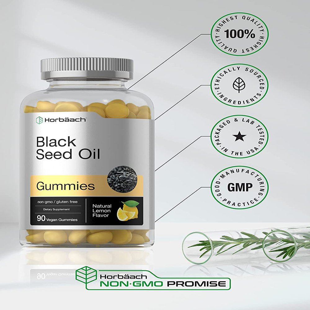 Blackseed Oil Gummies | 90 Count | Vegan Formula | Natural Lemon Flavor | by Horbaach