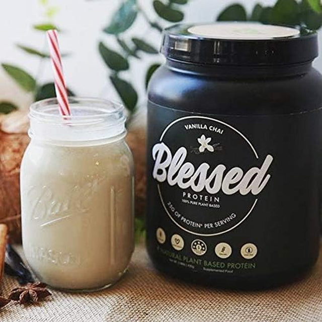 BLESSED Vegan Protein Powder - Plant Based Protein Powder Meal Replacement Protein Shake, 23G of Pea Protein Powder, Dairy Free, Gluten Free, Soy Free, No Sugar Added, 30 Servings (Vanilla Chai)