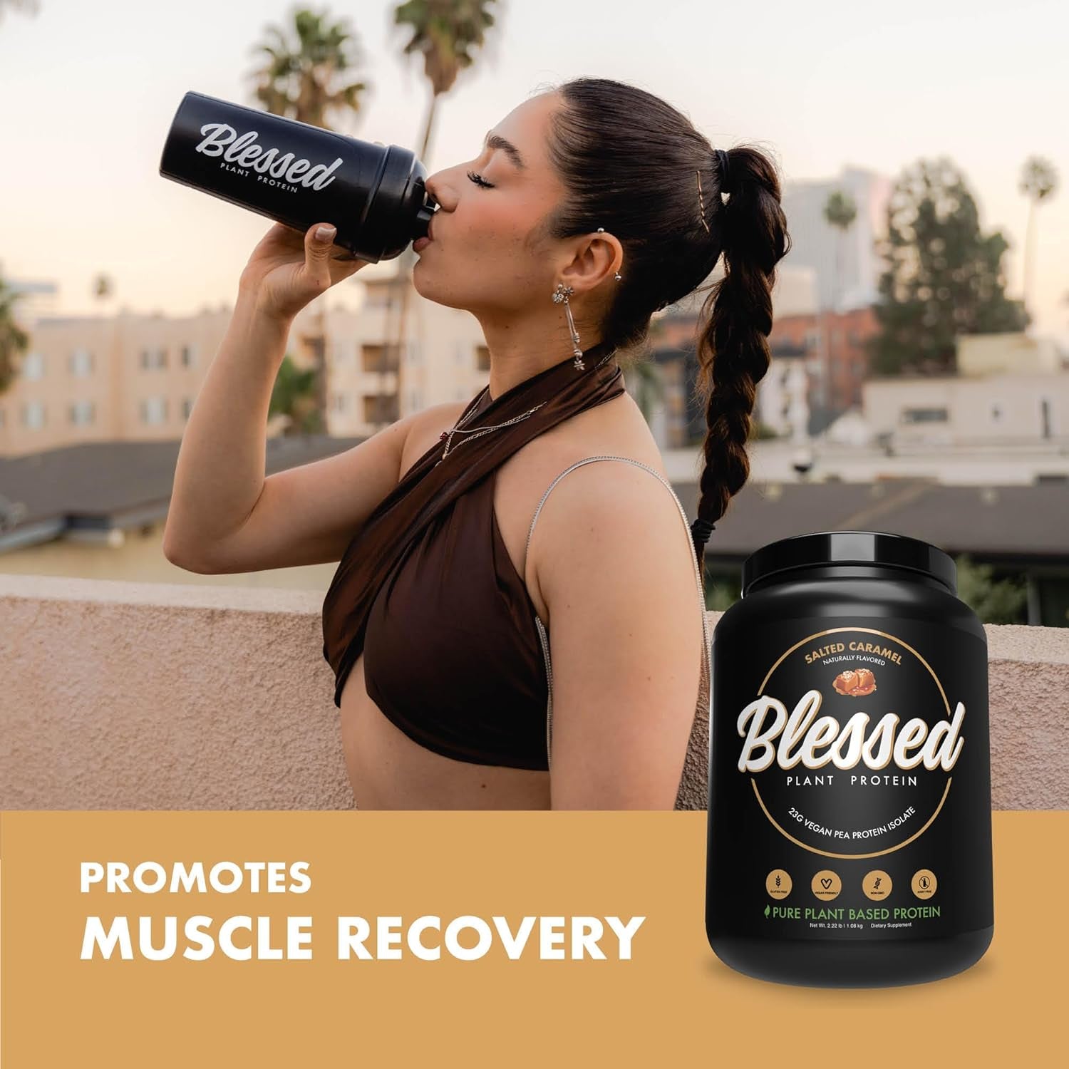 Blessed Vegan Protein Powder - Plant Based Protein Shake Meal Replacement Powder - 23G of Pea Protein Powder for Women & Men, Non-Dairy, Gluten Free, No Sugar Added, 30 Servings (Salted Caramel)