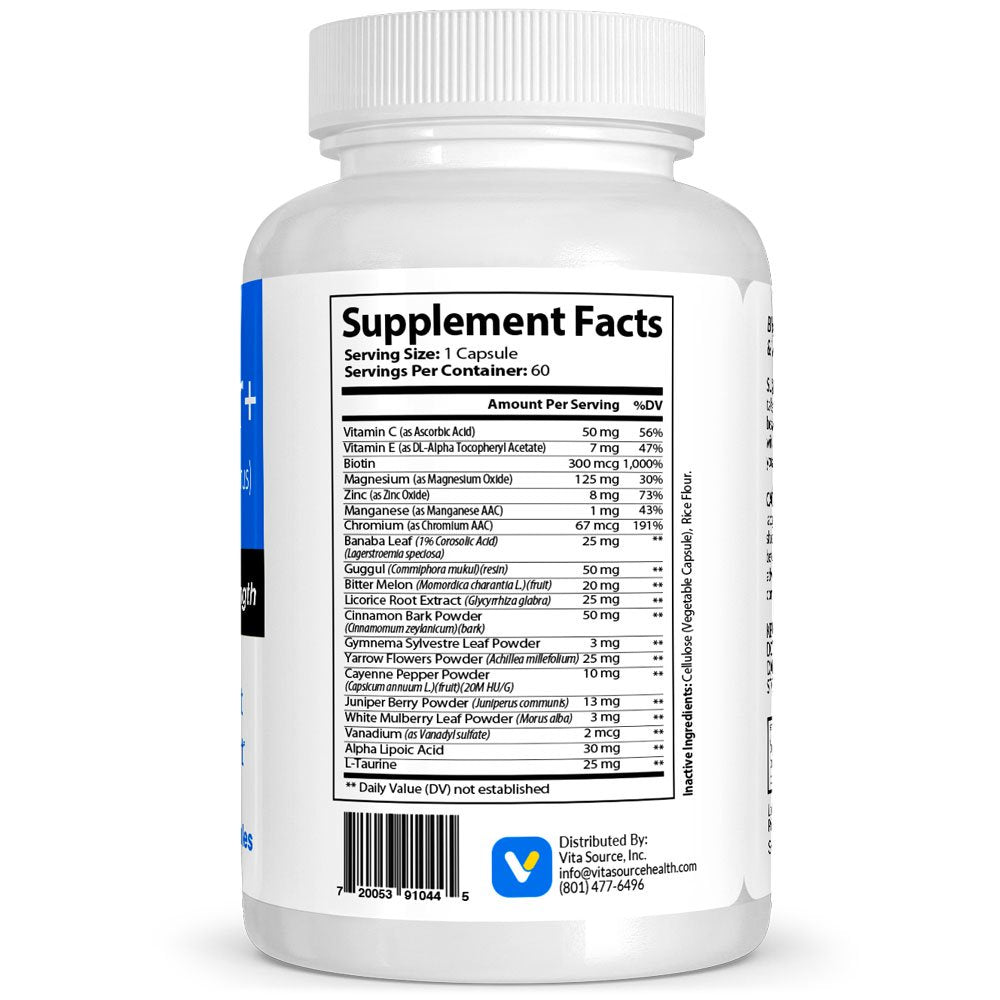 Blood Sugar Support Pharmaceutical Grade OTC Supplement 800Mg, OTC, Vitamins, 60 Pills, Vitasource