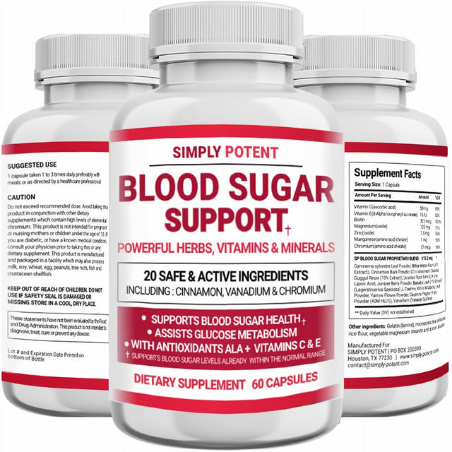 Blood Sugar Support Supplement 20 Herb/Vitamin Blend Glucose Balance & Control 60 Capsule