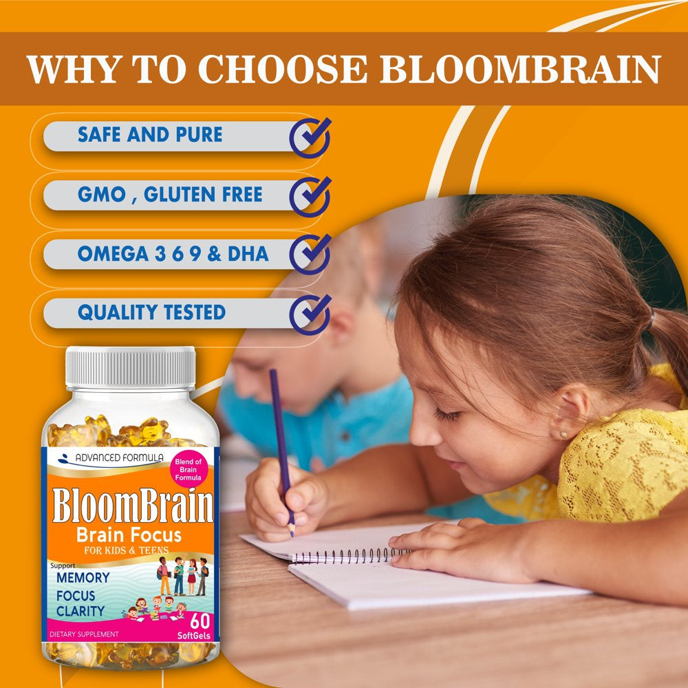 Bloombrain Brain Vitamins for Kids, Memory Booster for Kids Brain with Omega 3 6 9, Brain Vitamins EPA DHA Supplements- 60 Softgels Vitamins America'S Best Deals
