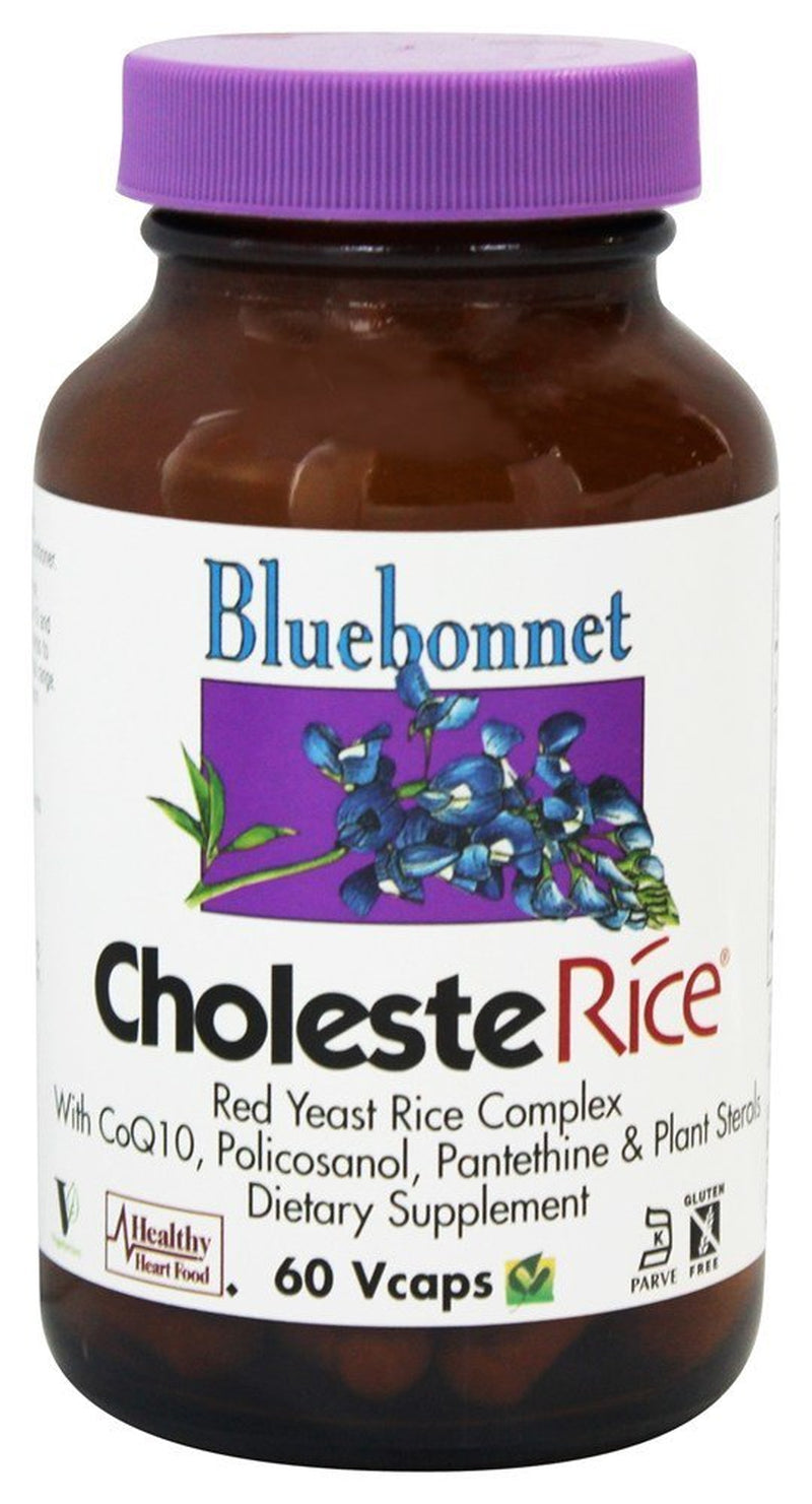 Bluebonnet Nutrition CholesteRice Red Yeast Rice Complex- 60 Vegetarian CapsulesBluebonnet's CholesteRice Capsules provide red yeast rice, plant sterols, pantethine, natural trans-isomer coenzyme Q-10 and sugar cane wax derived policosanol. Bluebonnet's CholesteRice Capsules is a unique formula that helps to maintain cholesterol levels that are already within the normal range. Bluebonnet's CholesteRice Capsules are available in easy-to-swallow vegetable capsules for maximum assimilation and absorption. Red Yeast Rice Complex With CoQ10, Policosanol, Pantethine & Plant Sterols Dietary Supplement Specialty SupplementsSpecialty supplements are either single ingredient products or combination formulas consisting of complementary, synergistic ingredients targeted for specific structure/function application(s) in the body, such as skin, joint, brain, immune, cellular, eye and heart health. There is no question regarding the direct link between diet and health. This direct