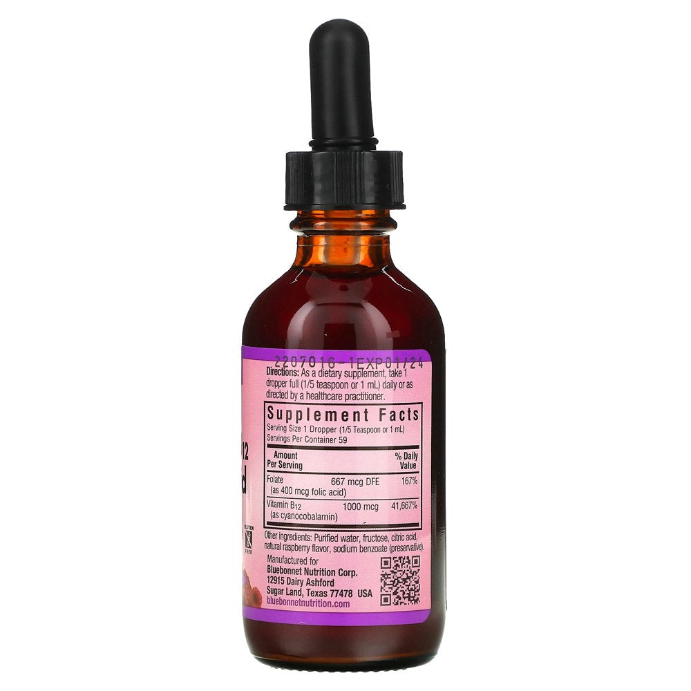 Bluebonnet Nutrition Liquid Vitamin B-12 & Folic Acid Natural Raspberry Flavor 2 oz. (59 ml) Bluebonnet’s Liquid Vitamin B-12 & Folic Acid contains 1000 mcg of pure, fast-acting vitamin B-12 and 400 mcg of folic acid in a delicious, natural raspberry flavor. Natural Raspberry Flavor Dietary Supplement VitaminsVitamins differ from macronutrients like carbohydrates, proteins and fats by virtue of the amount required. Typically, minuscule amounts are needed in comparison.