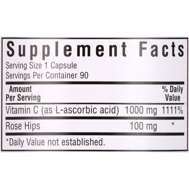 Bluebonnet Nutrition - Vitamin C-1000 Mg plus Rose Hips - 90 Vegetarian Capsules