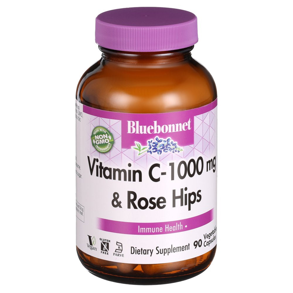 Bluebonnet Nutrition Vitamin C-1000 mg Plus Rose Hips With Citrus Bioflavonoids Bluebonnet Nutritionâs Vitamin C-1000 mg Plus Rose Hips provide vitamin C from pure L-ascorbic acid, rose hips and bioflavonoids from all natural citrus fruits in easy-to-swallow vegetable capsules for maximum assimilation and absorption. Bluebonnet Nutrition's Vitamin C-100 mg Plus Rose Hips is infused with Citrus Bioflavonoids.VitaminsVitamins differ from macronutrients like carbohydrates, proteins and fats by