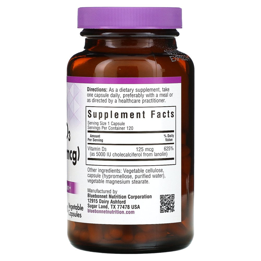 Bluebonnet's Vitamin D3 5000 IU Capsules provide pure vitamin D3 (cholecalciferol) from lanolin. Available in easy-to-swallow capsules for maximum assimilation and absorption.