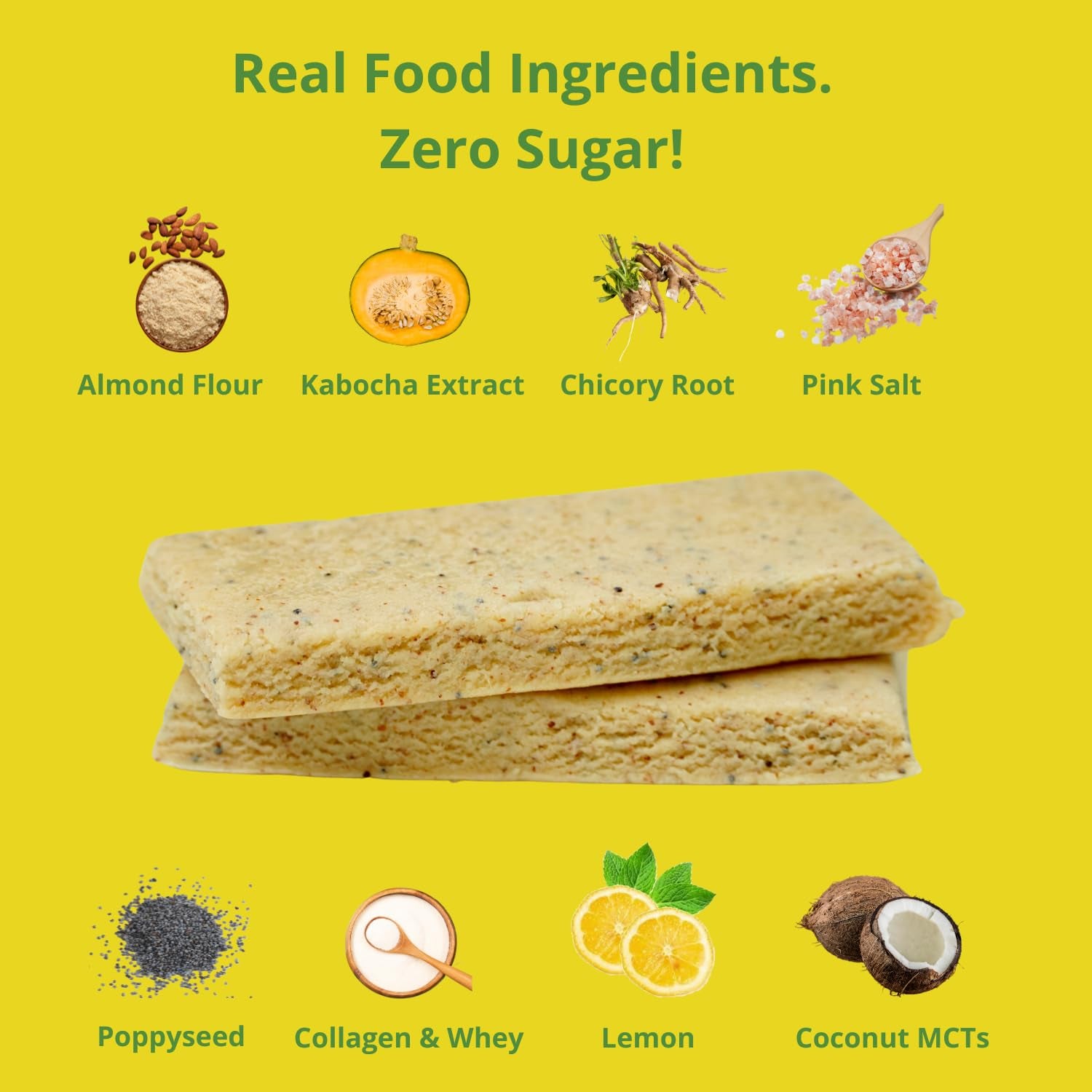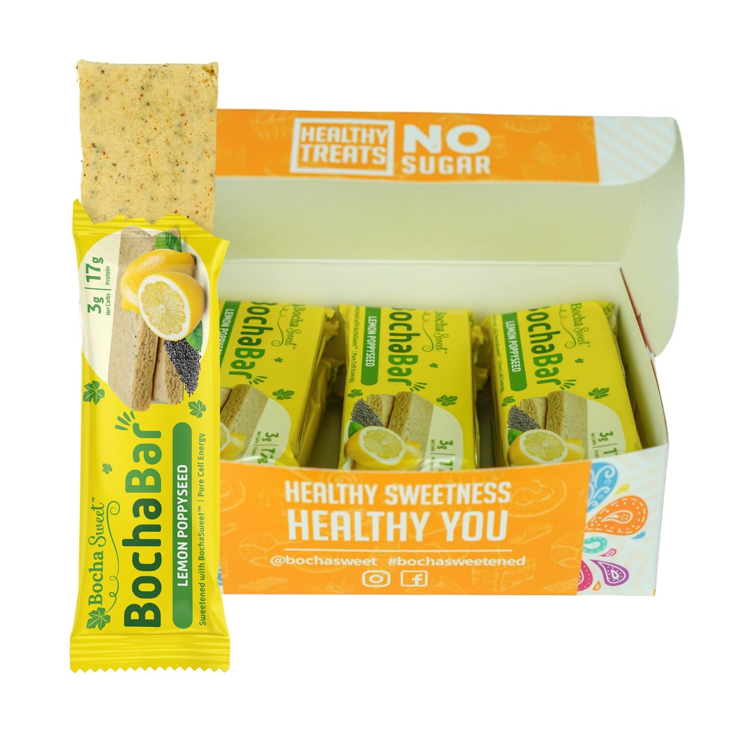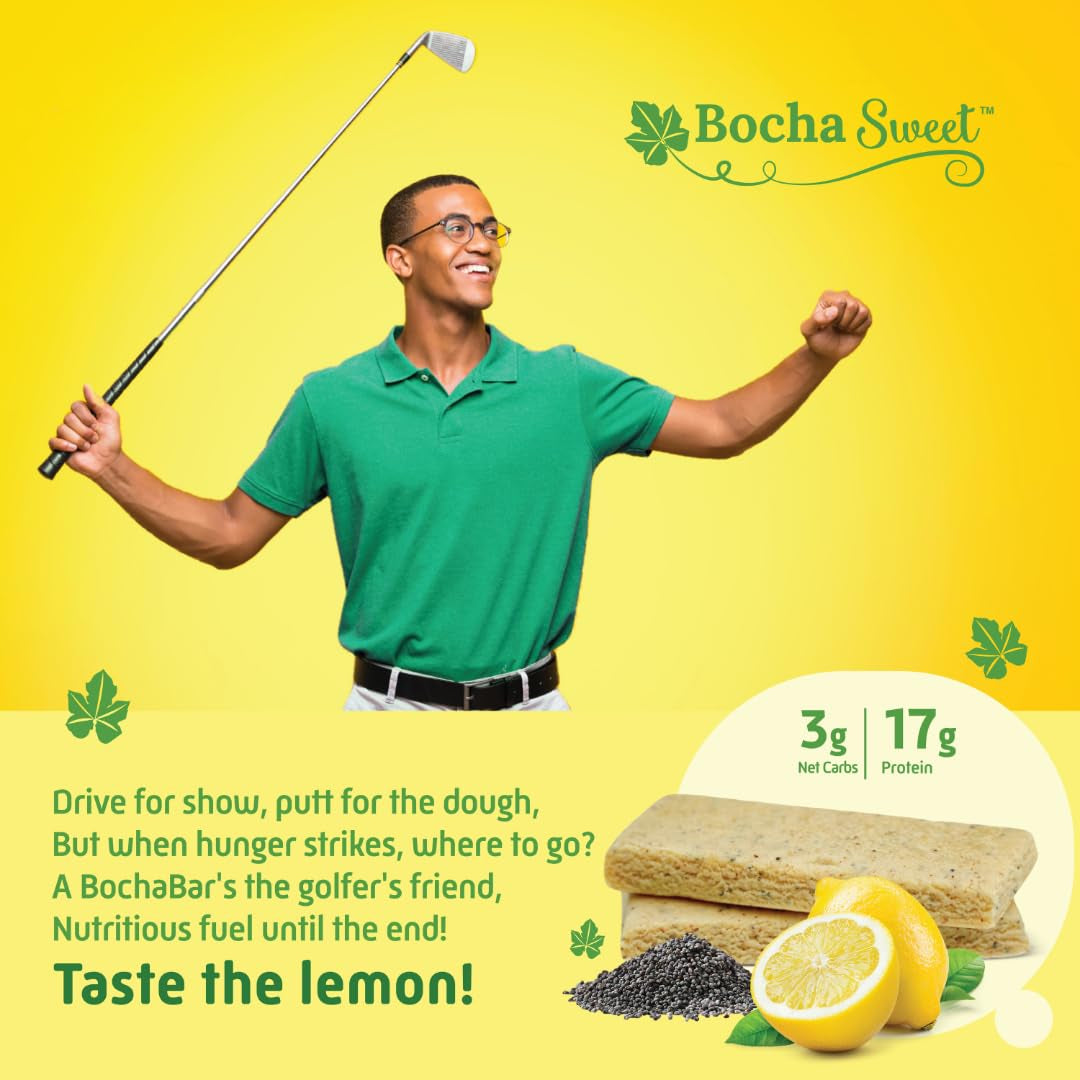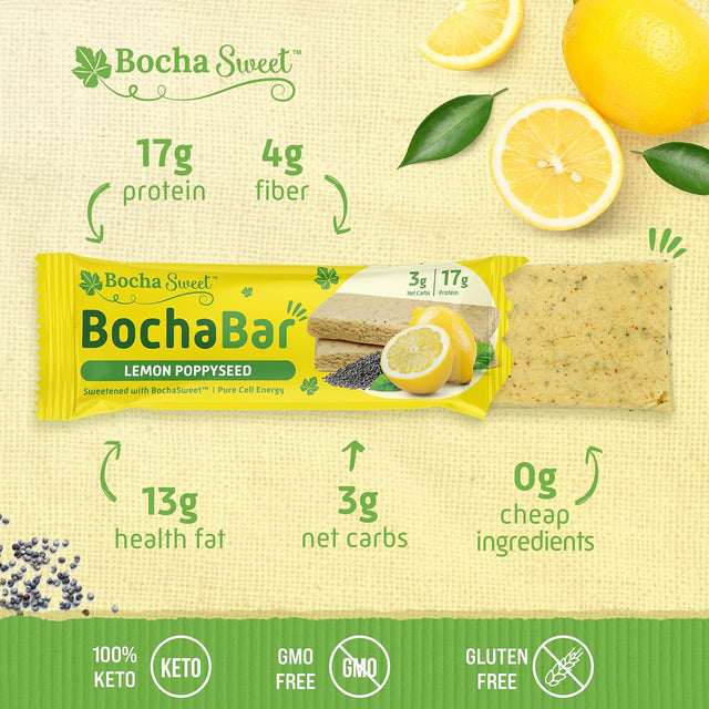 Bochasweet Keto Protein Bar, Lemon Poppyseed Bochabar, 17G Grass Fed Collagen, Low Carb, Keto-Friendly, Gluten Free, 12 Count