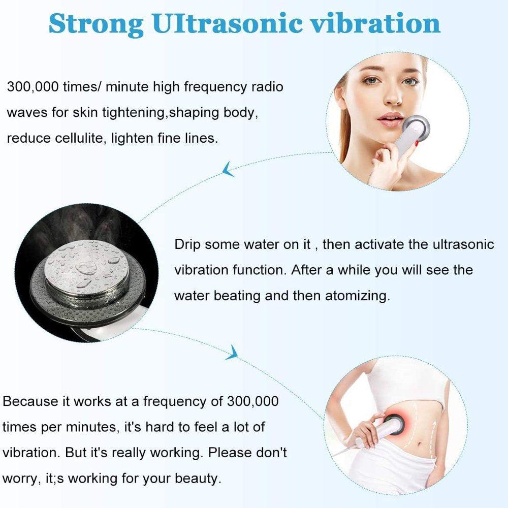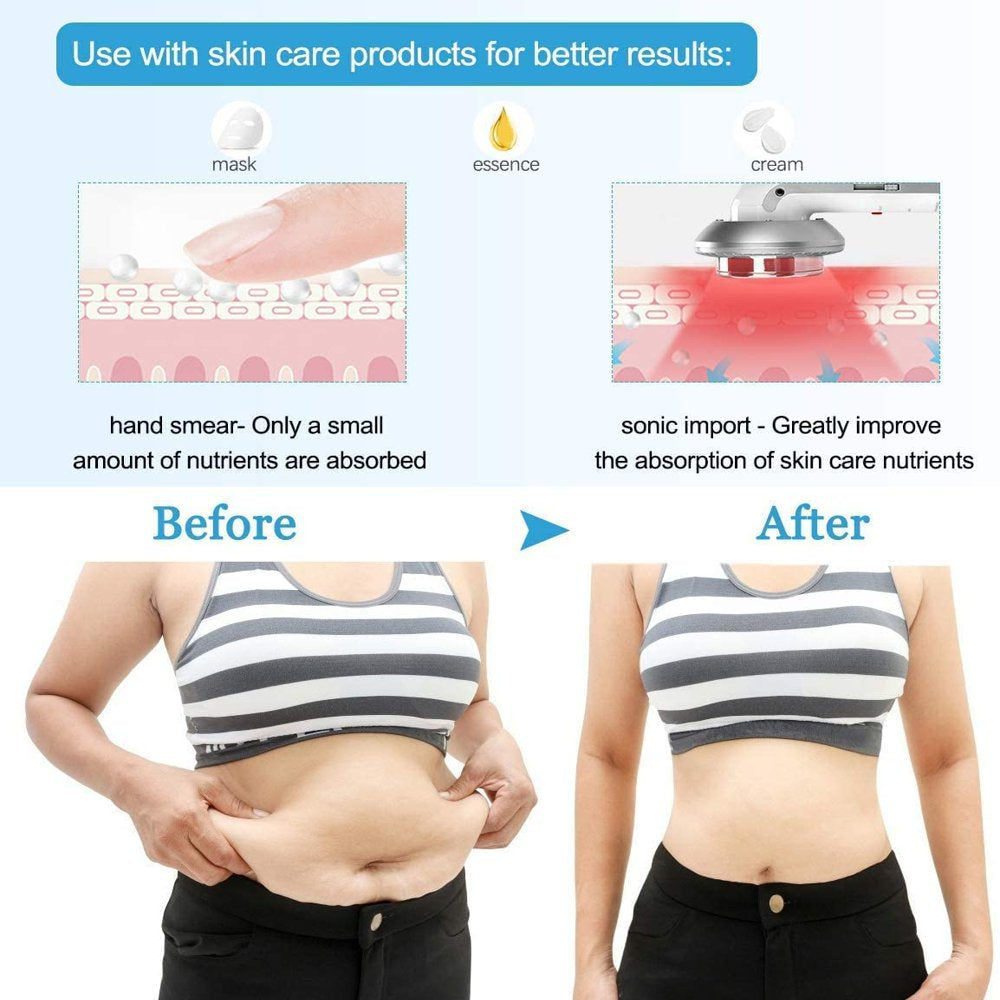 - 【3 in 1 Ultrasonic Slimming Massager】Enables you to shape a charming body and restore the resilience of skin with a short period of time. Multi-functional beauty instrument, can be used on the body and face , remove excess fat from the waist, abdomen, arms, legs and buttocks , promote the absorption of skin care nutrients,activate tissue cells, and prevent aging. Make you more confident.