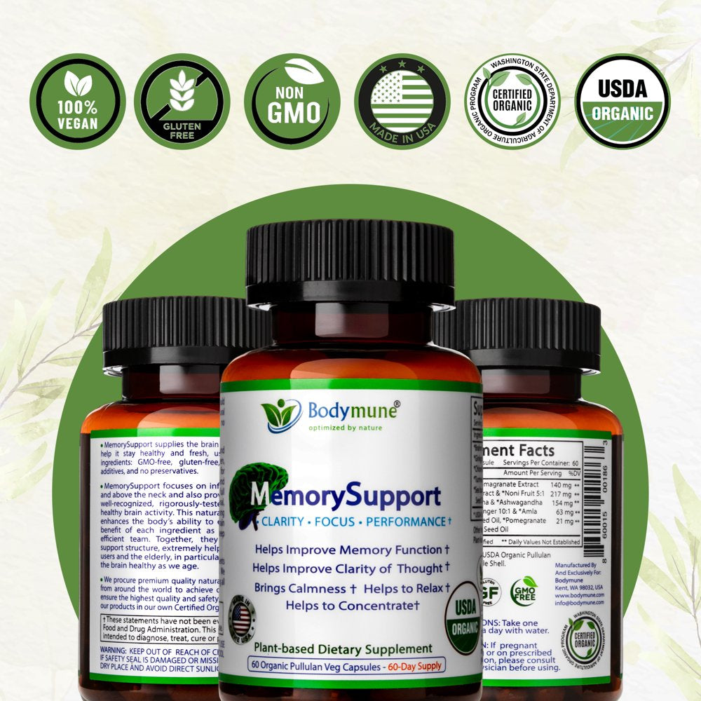 | Product Name | Bodymune Memory Support Supplement for Occasional Memory Loss Mental Fatigue Mental Exhaustion - Organic Ginkgo Biloba Ashwagandha Brahmi Chlorella Spirulina Noni Essential Oils & More 60-Day Supply |