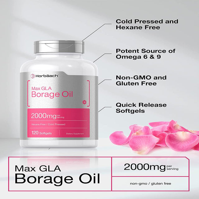 Borage Oil Capsules 2000 Mg | 120 Softgels | 380Mg of GLA | by Horbaach