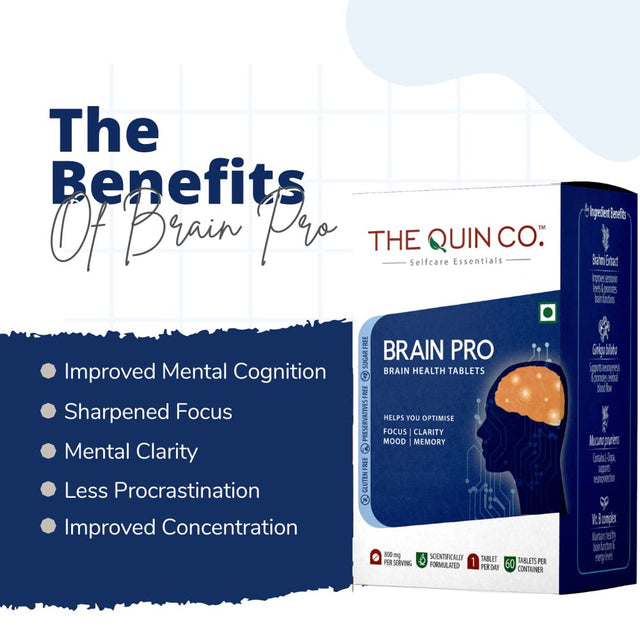 - Our committment- each ingredient in the Brain pro is selected based on the research, and evidence of its ability to deliver a sustained benefit. All ingredients are sourced carefully as we strive to provide them in the most potent, pure and bioavailable form. The quin co Brain pro contains no artificial colors, flavors, or sweeteners, and vegan, gluten-free, and non-gmo; Package Weight: 0.12kg; Shelf Life: 730 days; Package Content: Pack of 1 X Brain Booster Supplement