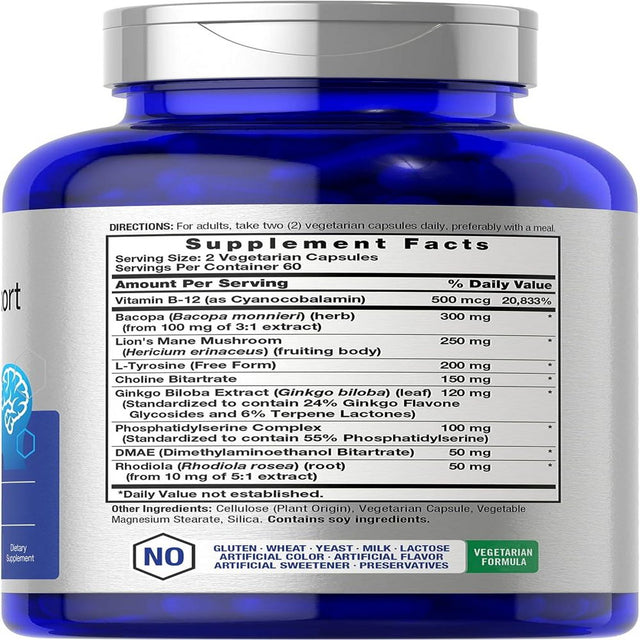 Brain Support Supplement | 120 Capsules | Vegetarian Formula | by Horbaach is backordered and will ship as soon as it is back in stock.
