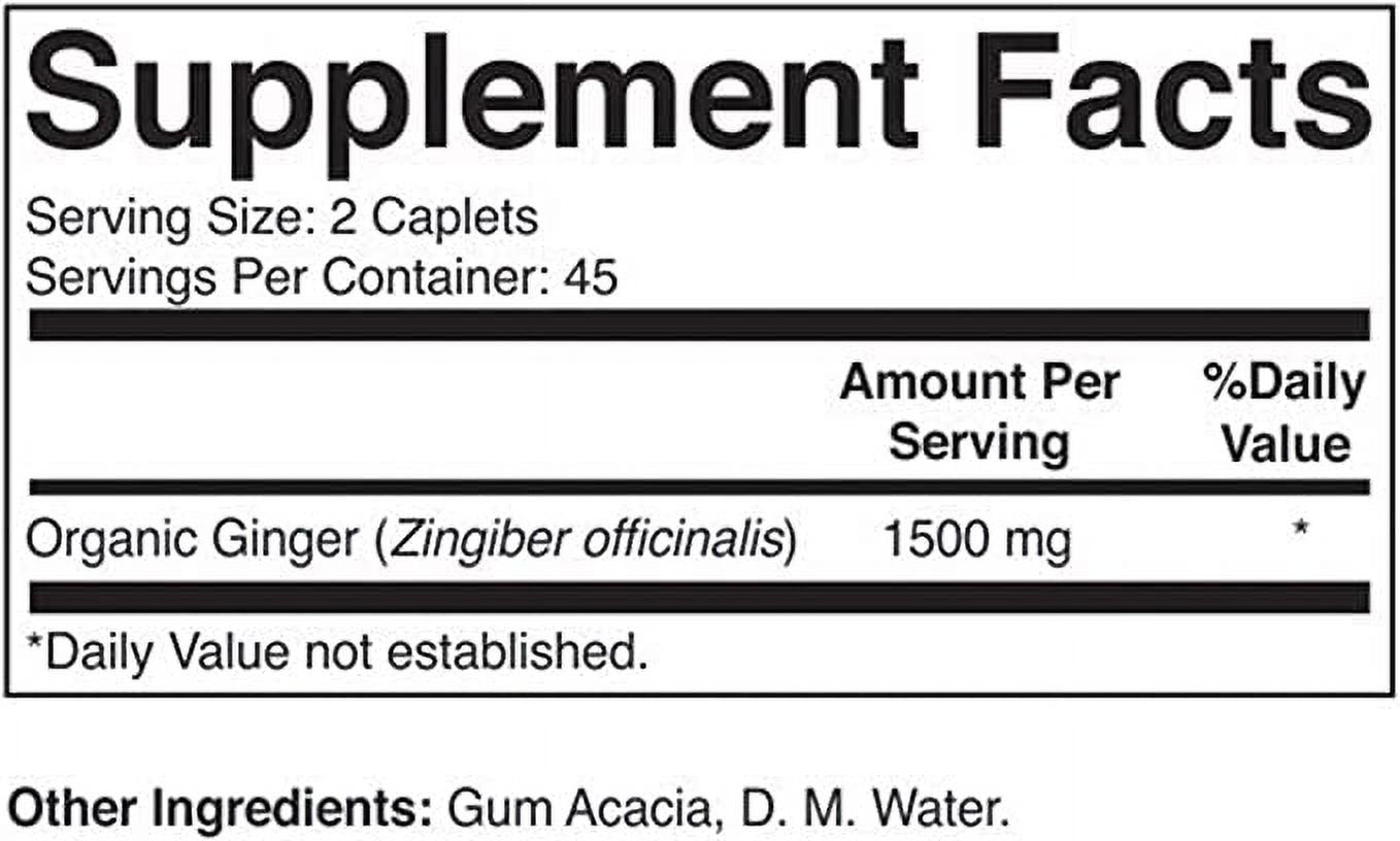 - 1,500mg of Organic Ginger Per Serving, 750mg Per Tablet