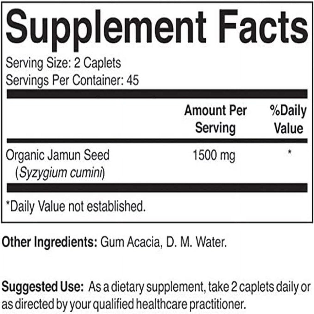 - 1,500mg of Organic Jamun Seed Per Serving, 750mg Per Tablet