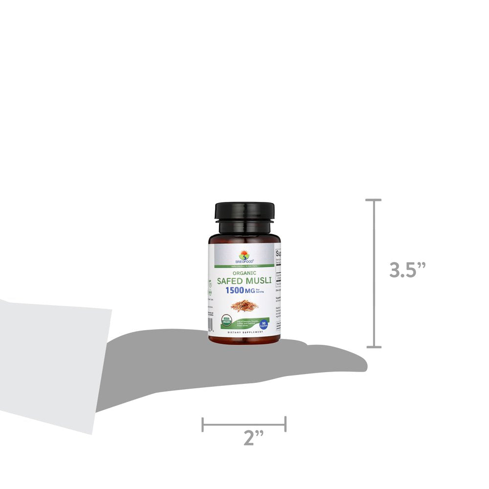 Brieofood Organic Safed Musli 1500Mg, 45 Servings, Vegetarian, Gluten Free, 90 Vegetarian Tablets
