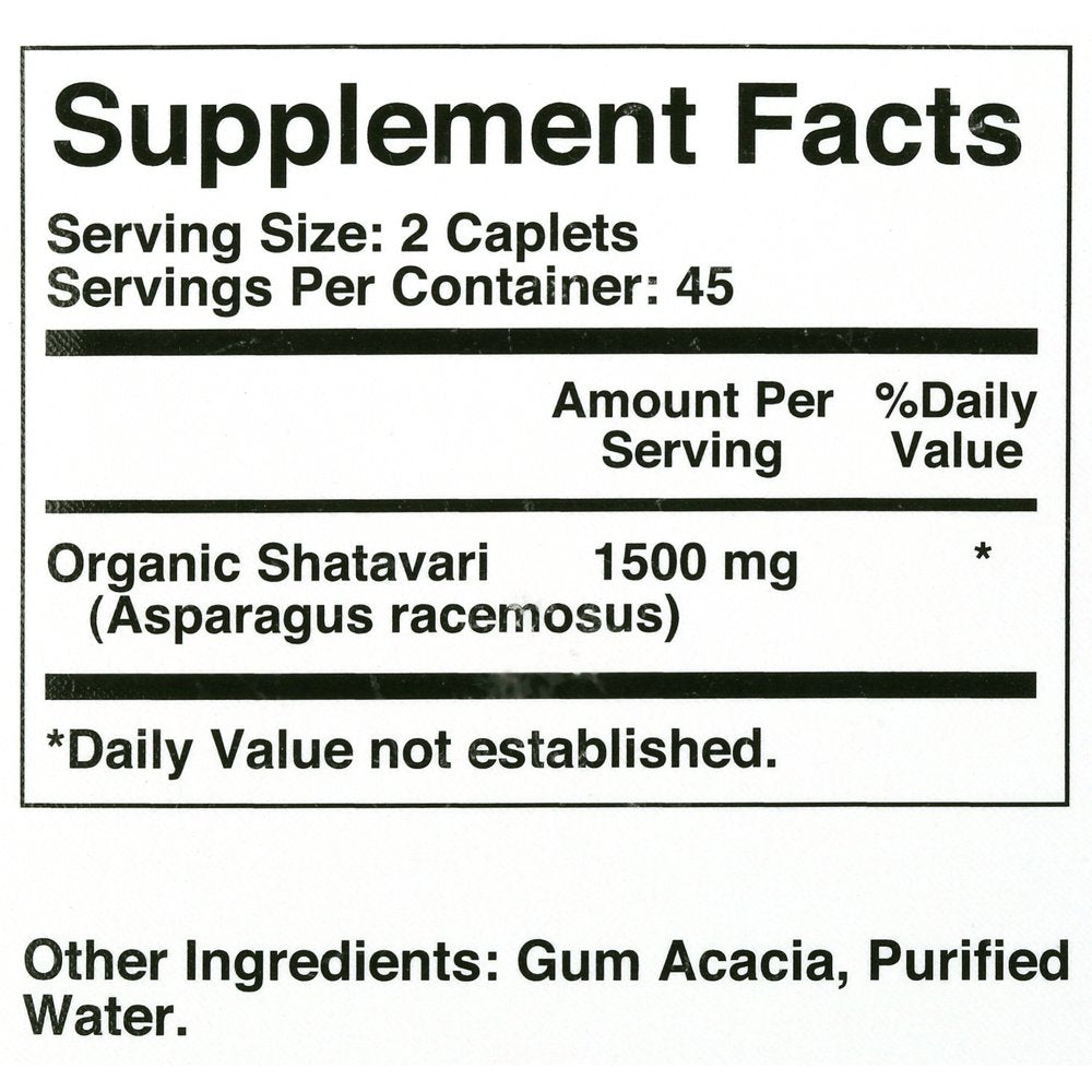 - 1,500mg of Organic Shatavari Per Serving, 750mg Per Tablet