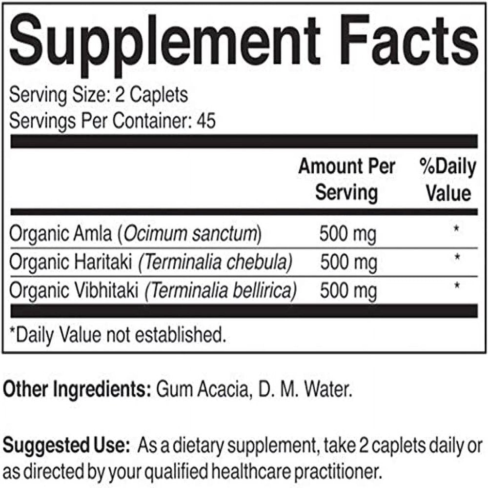 - 1,500mg of Organic Triphala Per Serving, 750mg Per Tablet