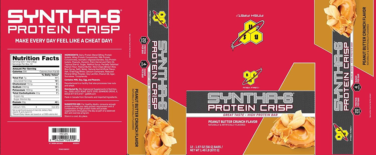 BSN Peanut Butter Protein Crisp Snack Bar, 12 Count