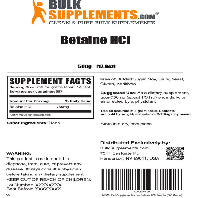 BulkSupplements.com Betaine HCl, Betaine Hydrochloride Powder Features: