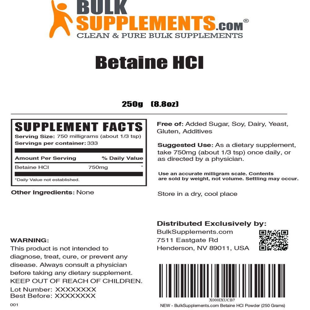 BulkSupplements.com Betaine HCl, Betaine Hydrochloride Powder Features: