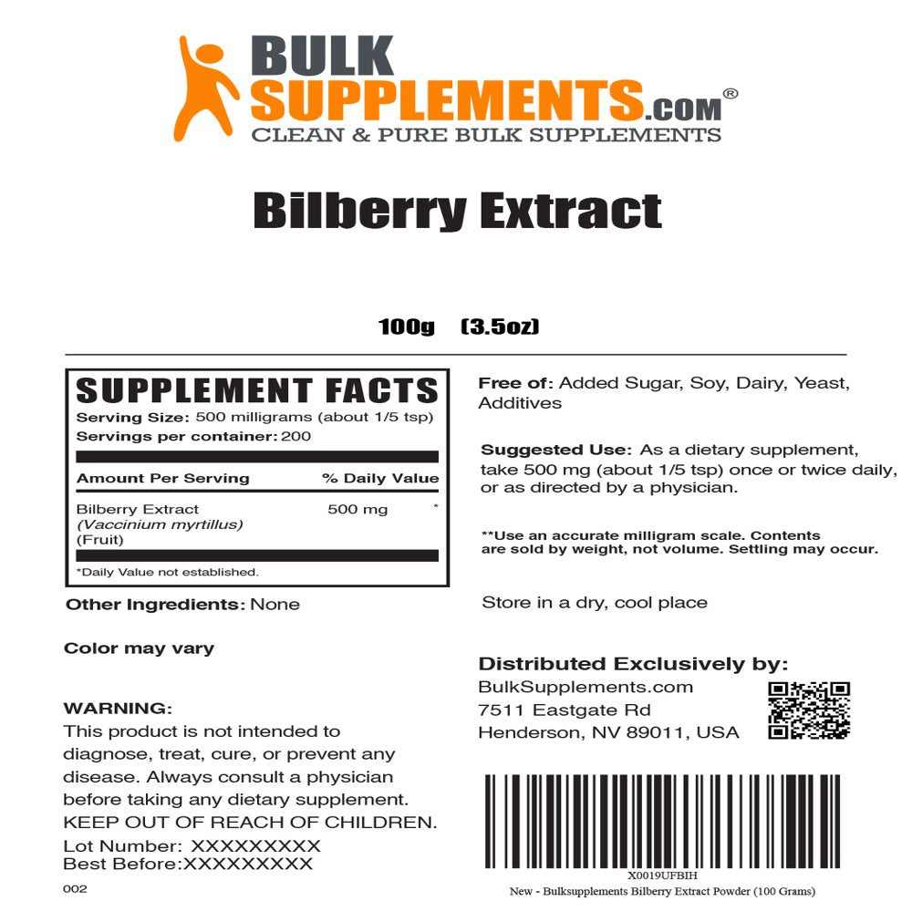 | Product Name | BulkSupplements.com Bilberry Extract Powder - Eye Pressure Support - Antioxidant Powder - Eye Supplement (100 Grams - 3.5 oz) |