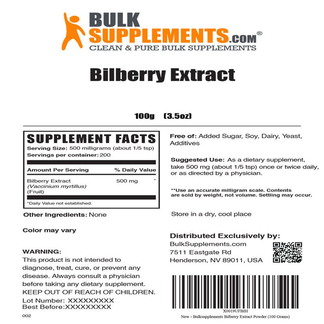 Bulksupplements.Com Bilberry Extract Powder - Eye Pressure Support - Antioxidant Powder - Eye Supplement (100 Grams - 3.5 Oz) - 100 Grams (3.5 Oz) is backordered and will ship as soon as it is back in stock.