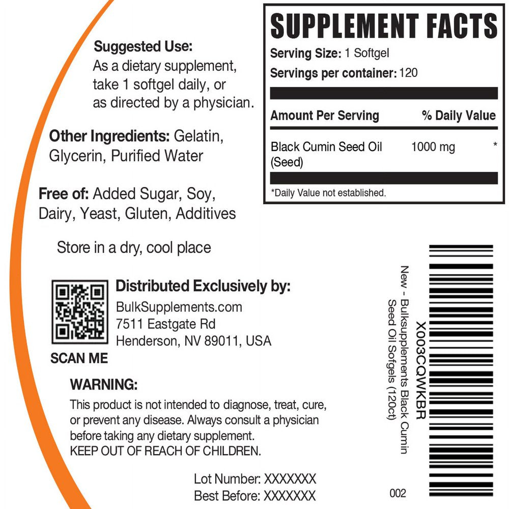 • Black Cumin Seed Oil Softgels, 1000mg by BulkSupplements.com