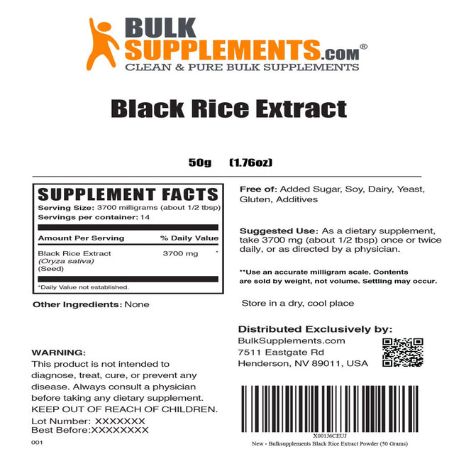 - BulkSupplements.com Black Rice Extract Powder, 3700mg