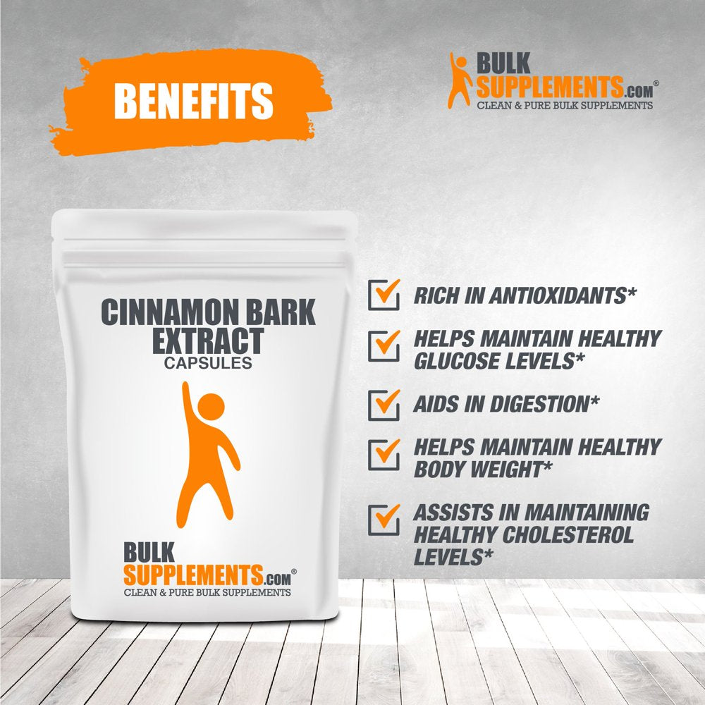 - Cinnamon bark extract, a blood sugar support supplement, helps in maintaining glucose and cholesterol levels and weight in individuals when taken in conjunction with diet and exercise.†