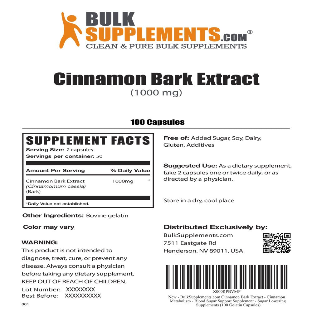 Bulksupplements.Com Cinnamon Bark Extract Capsules - Cinnamon Extract - Cinnamon Supplement - Blood Sugar Support Supplement (100 Gelatin Capsules - 100 Servings)